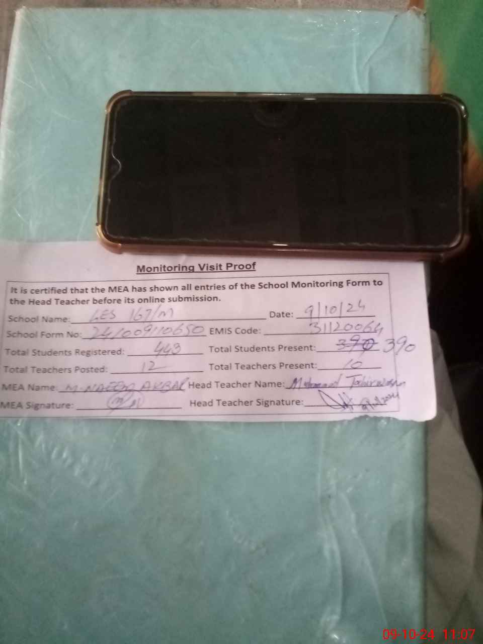 | Attendance Register | Head Teacher | MEA with School | Visit Proof |