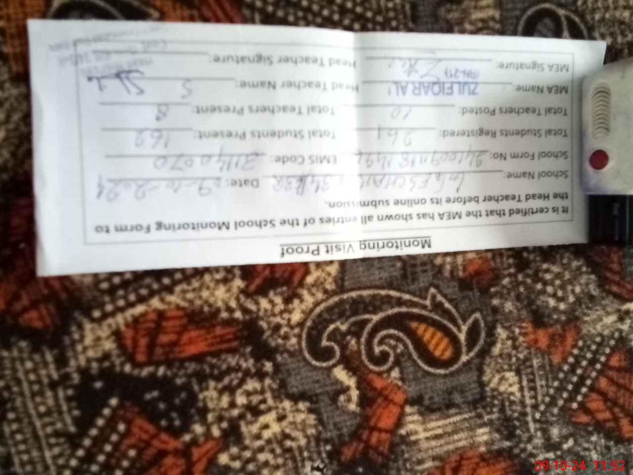 | Certified that this School was Inspected by the Undersigned MEA/DMO Today and the Information Stated Above is as Per Record. | |||||