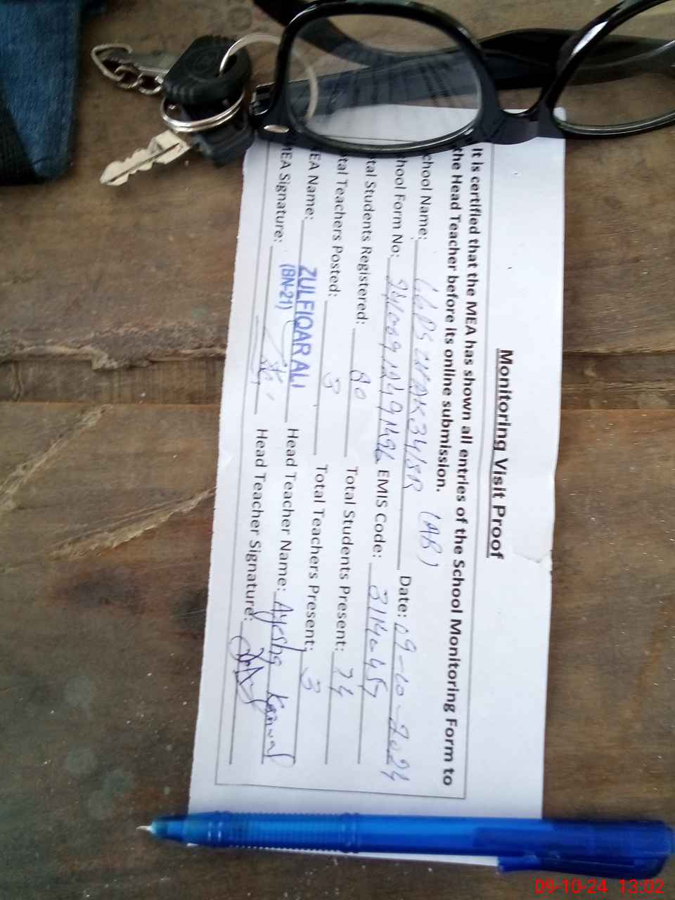 | Certified that this School was Inspected by the Undersigned MEA/DMO Today and the Information Stated Above is as Per Record. | |||||