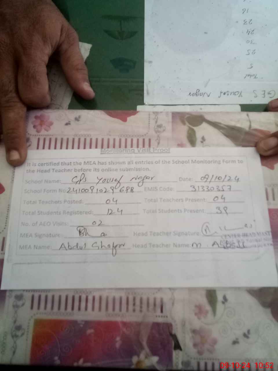 | EMIS Code: 31330357 | Name of School: GPS YOUSAF NAGAR | |||