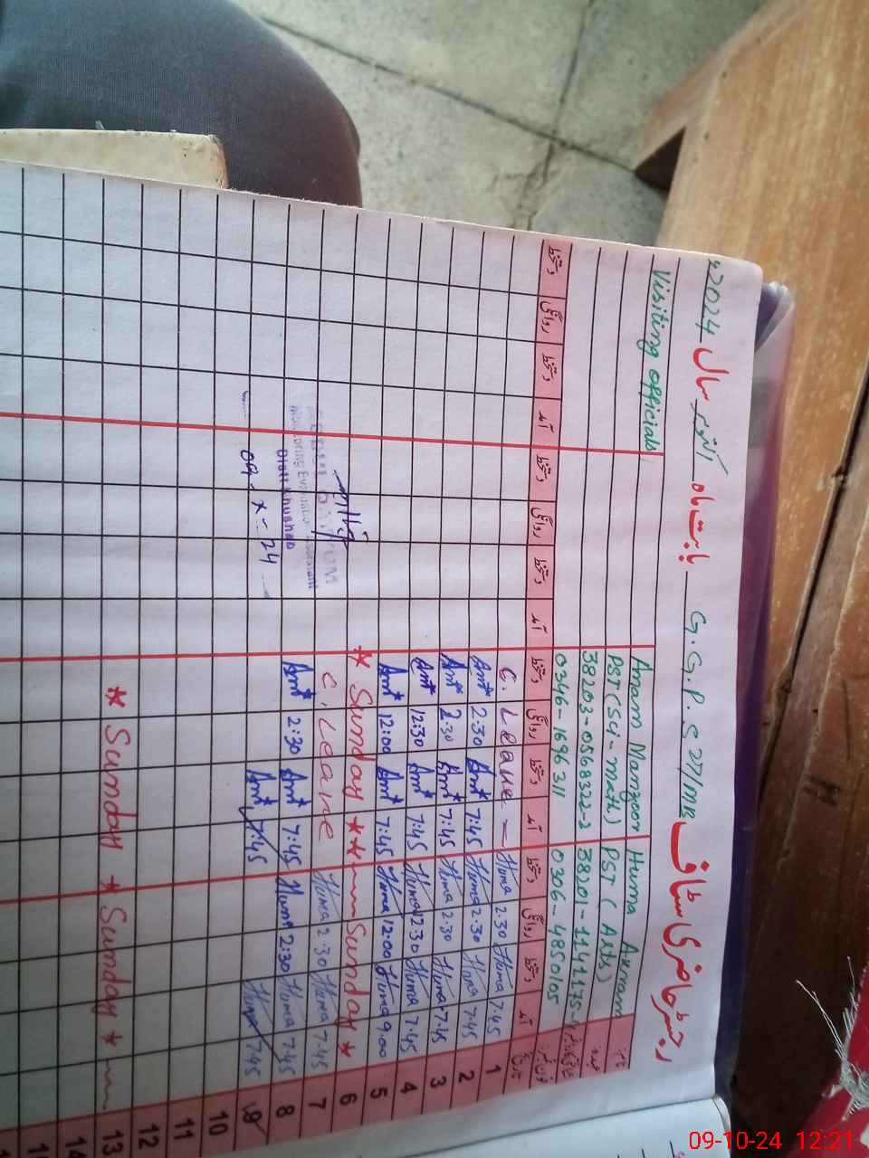 | CNIC | Full Name | Designation | R/C | Absence During Last Calender Month |