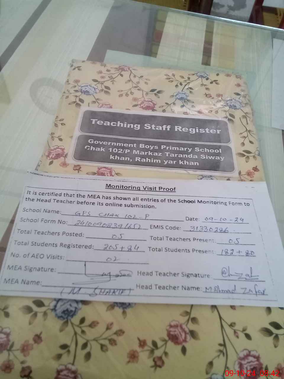 | Attendance Register | Head Teacher | MEA with School | Visit Proof |