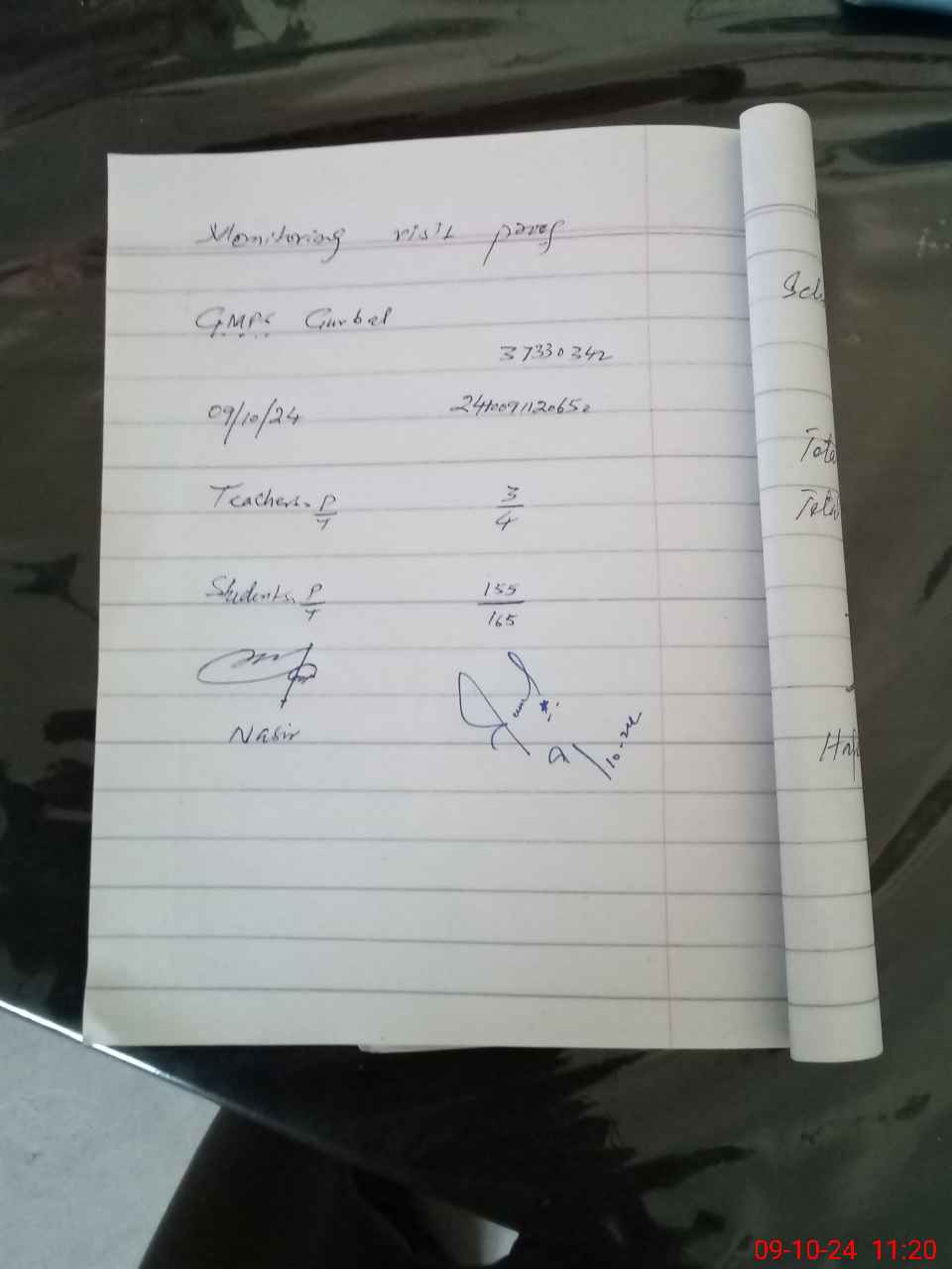 | Monitoring Date: 09-10-2024 | Start Time: 09-10-2024 11:00 AM | End Time: 09-10-2024 11:24 AM | Name of MEA: Rt**** Na**** Me**** | |