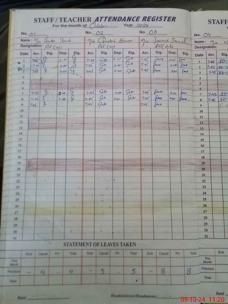 | Leave | Duty | Absent | Maternity | Medical | Ex- Pak |