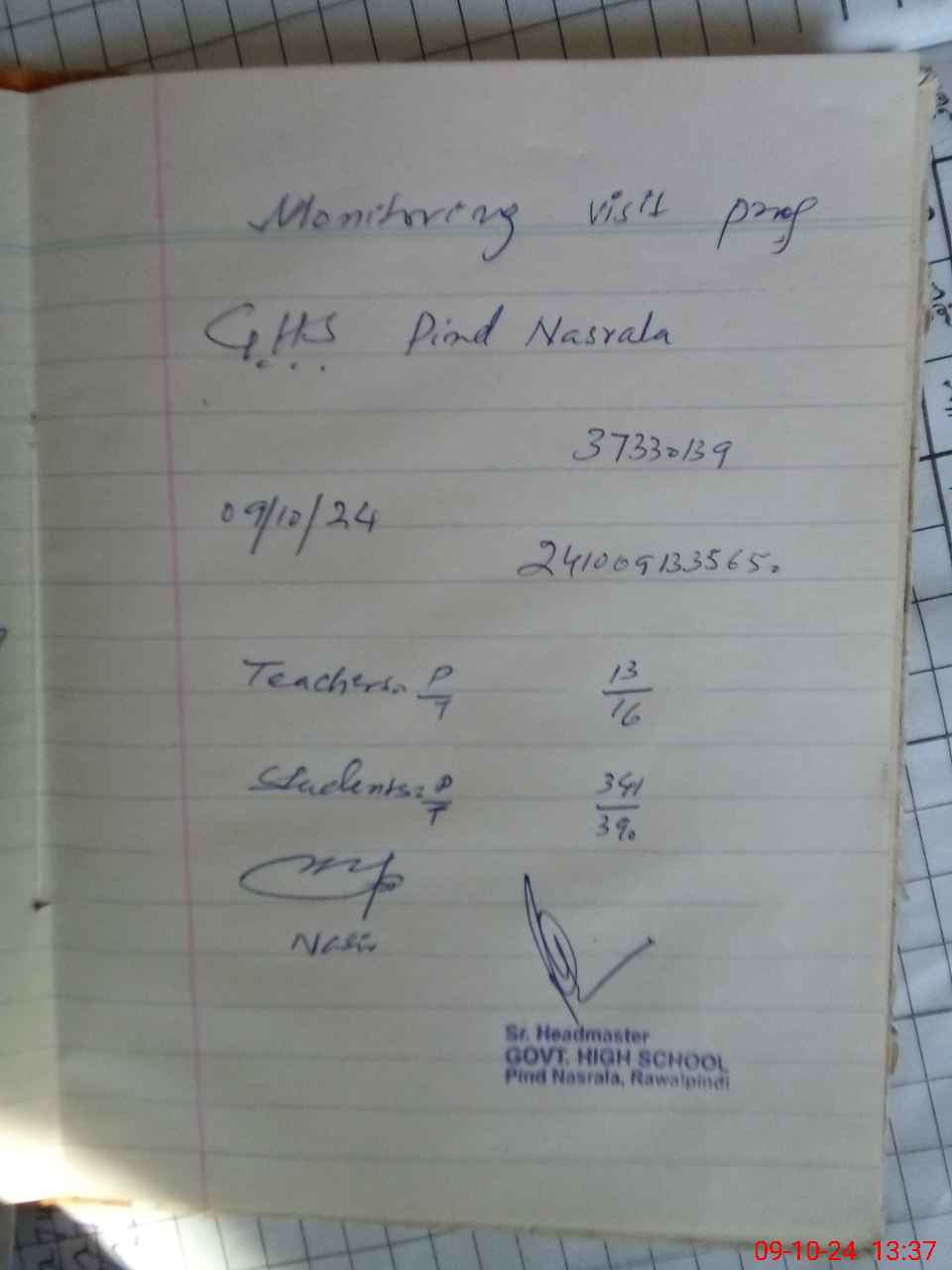 | EMIS Code: 37330139 | Name of School: GHS PIND NASRALA | |||