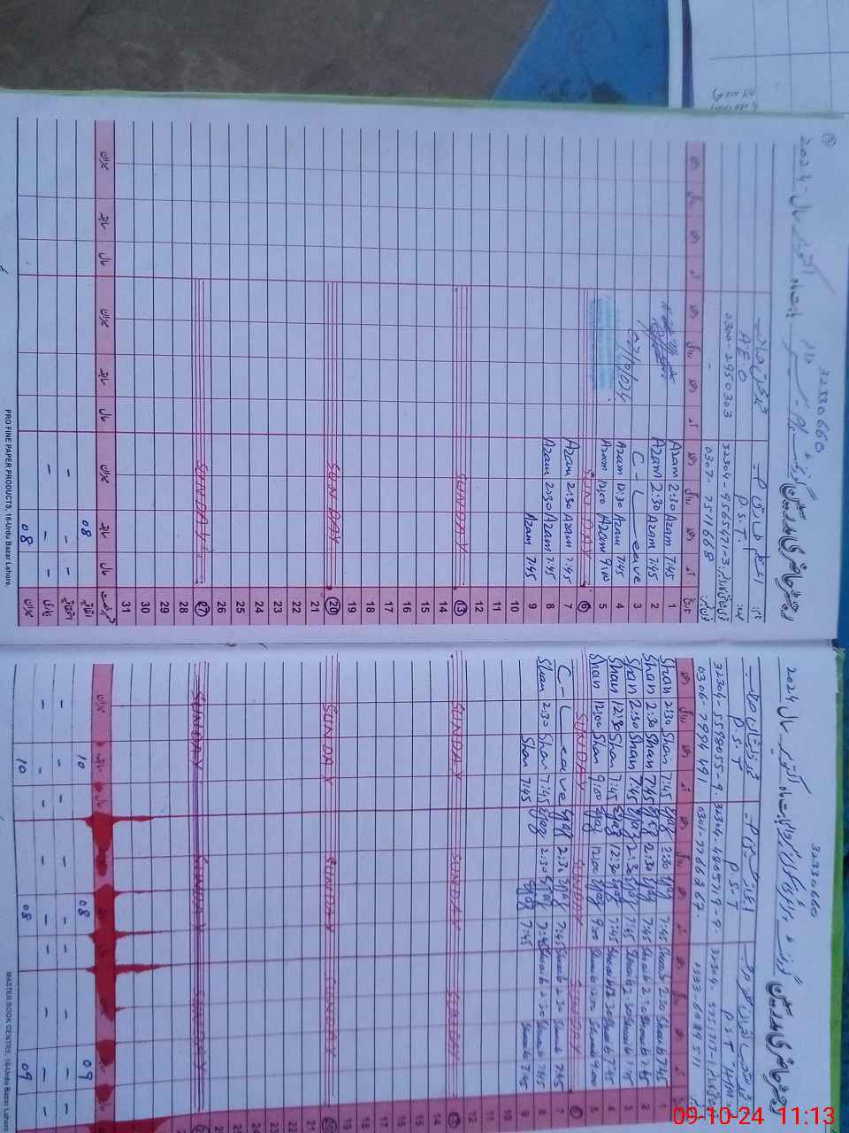 | CNIC | Full Name | Designation | R/C | Absence During Last Calender Month |