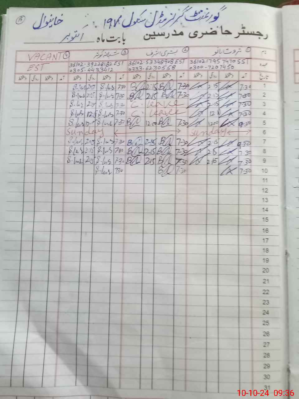 | Name: Sa**** Ba**** Designation: (School Headmaster's/Headmistress's) SST Phone/Cell Number: 03**** |