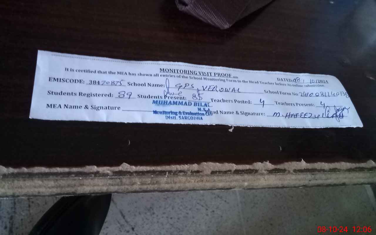 | EMIS Code: 38470875 | Name of School: GPS VEROWAL | |||