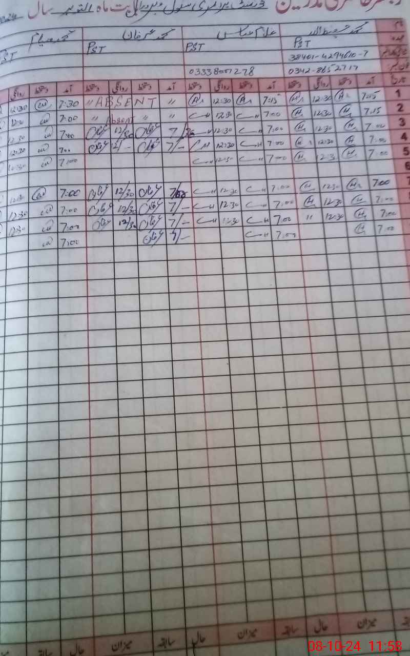 | Name: MHA**** UL**** Designation: (School Headmaster's/Headmistress's) PST Phone/Cell Number: 03**** |