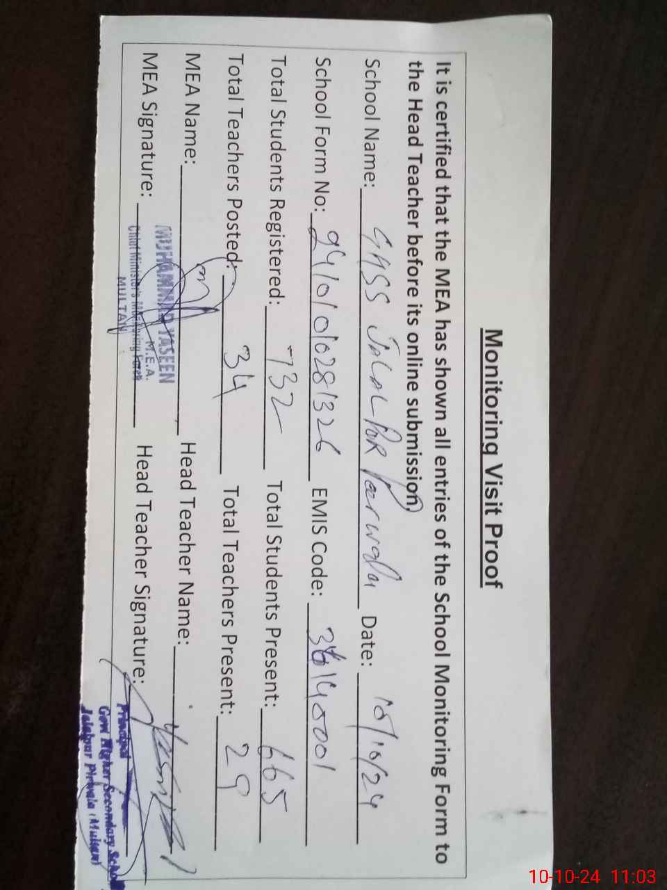 | EMIS Code: 36140001 | Name of School: GHSS JALALPUR PIRWALA | |||