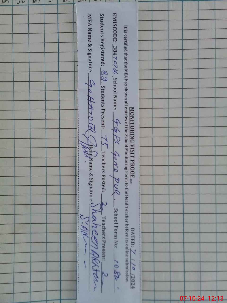 | EMIS Code: 38470716 | Name of School: GGPS GOND PUR | |||