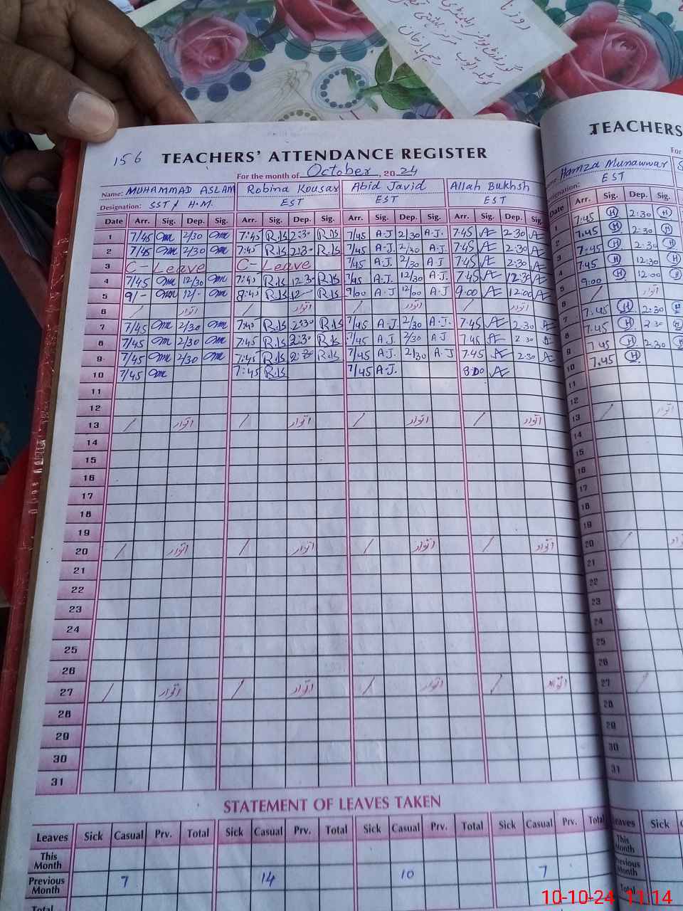 | Leave | Duty | Absent | Maternity | Medical | Ex- Pak |