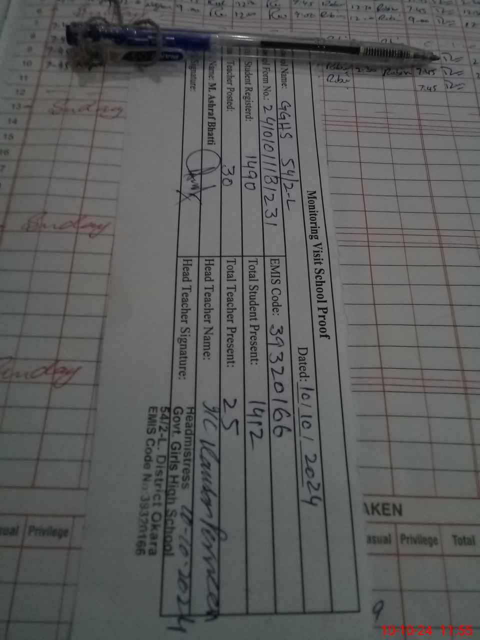 | EMIS Code: 39320166 | Name of School: GGHS 54/2-L | |||