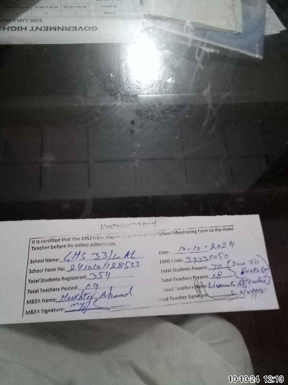 | EMIS Code: 39330050 | Name of School: GHS 33 1 AL OKARA | |||