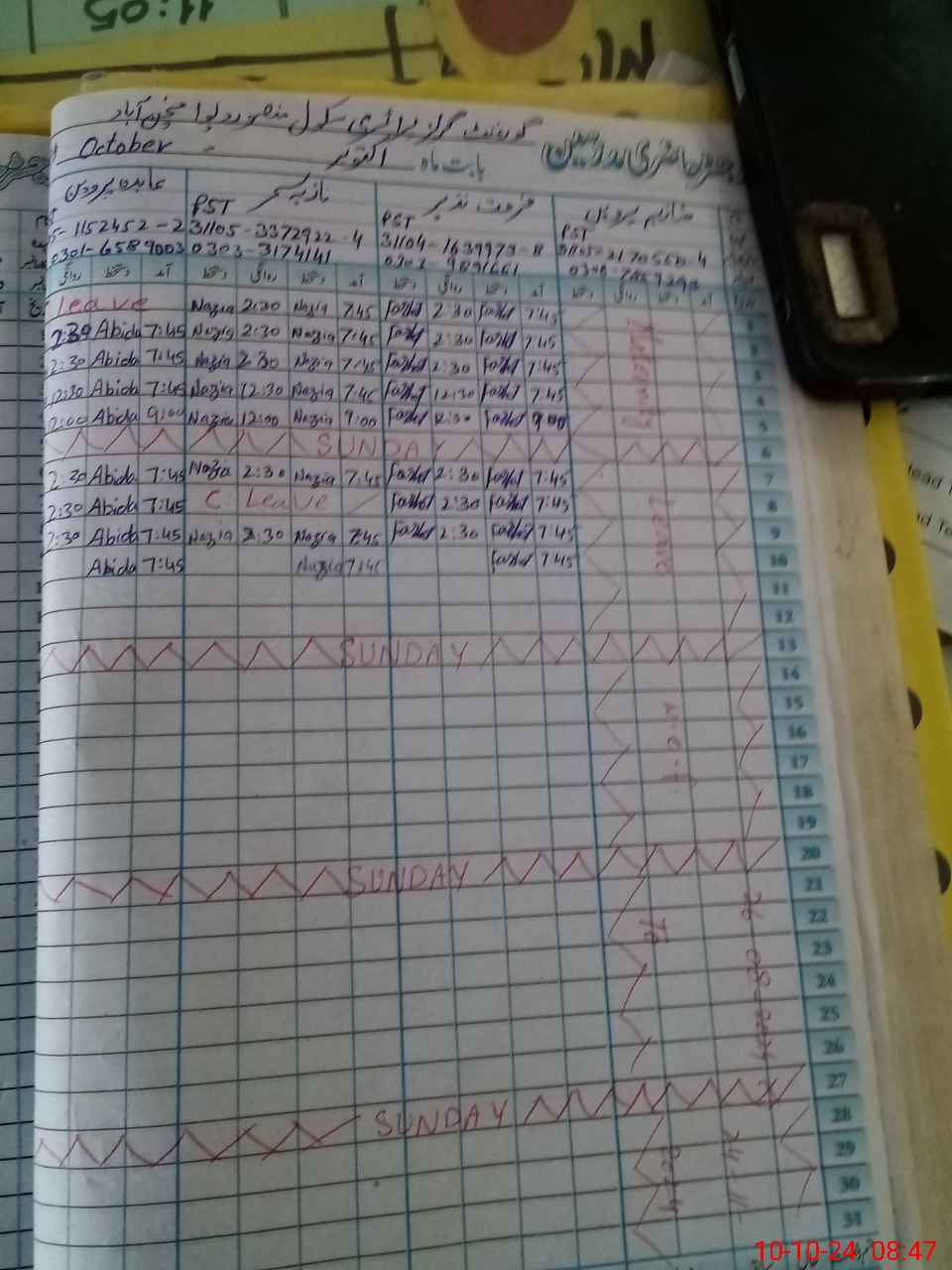 | Leave | Duty | Absent | Maternity | Medical | Ex- Pak |