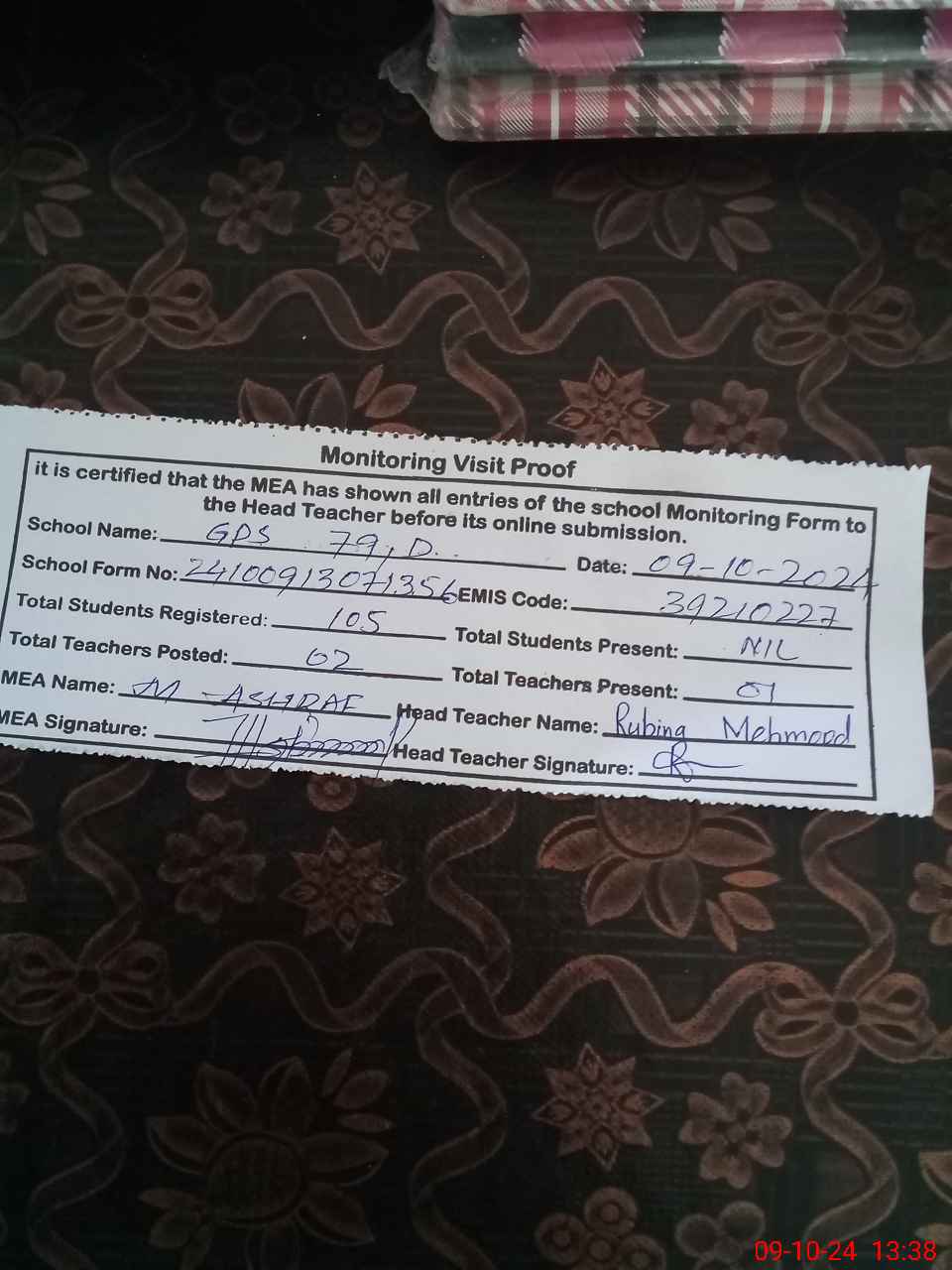 | EMIS Code: 39210227 | Name of School: GPS CHAK NO. 79 D | |||