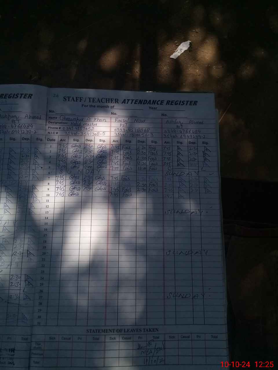 | Name: Gh**** Al**** Kh**** Designation: (School Headmaster's/Headmistress's) PST Phone/Cell Number: 03**** |