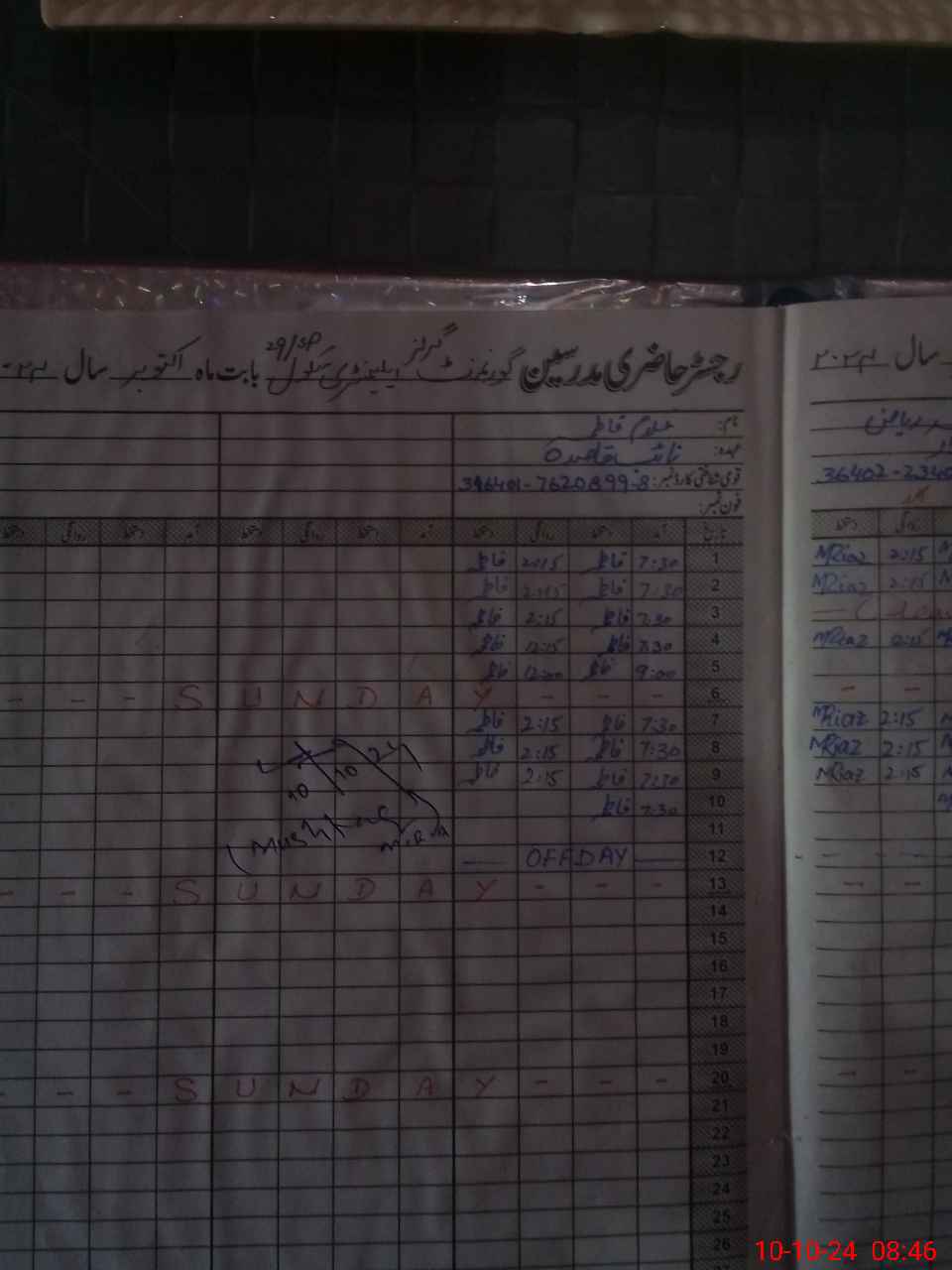 | CNIC | Full Name | Designation | R/C | Absence During Last Calender Month |