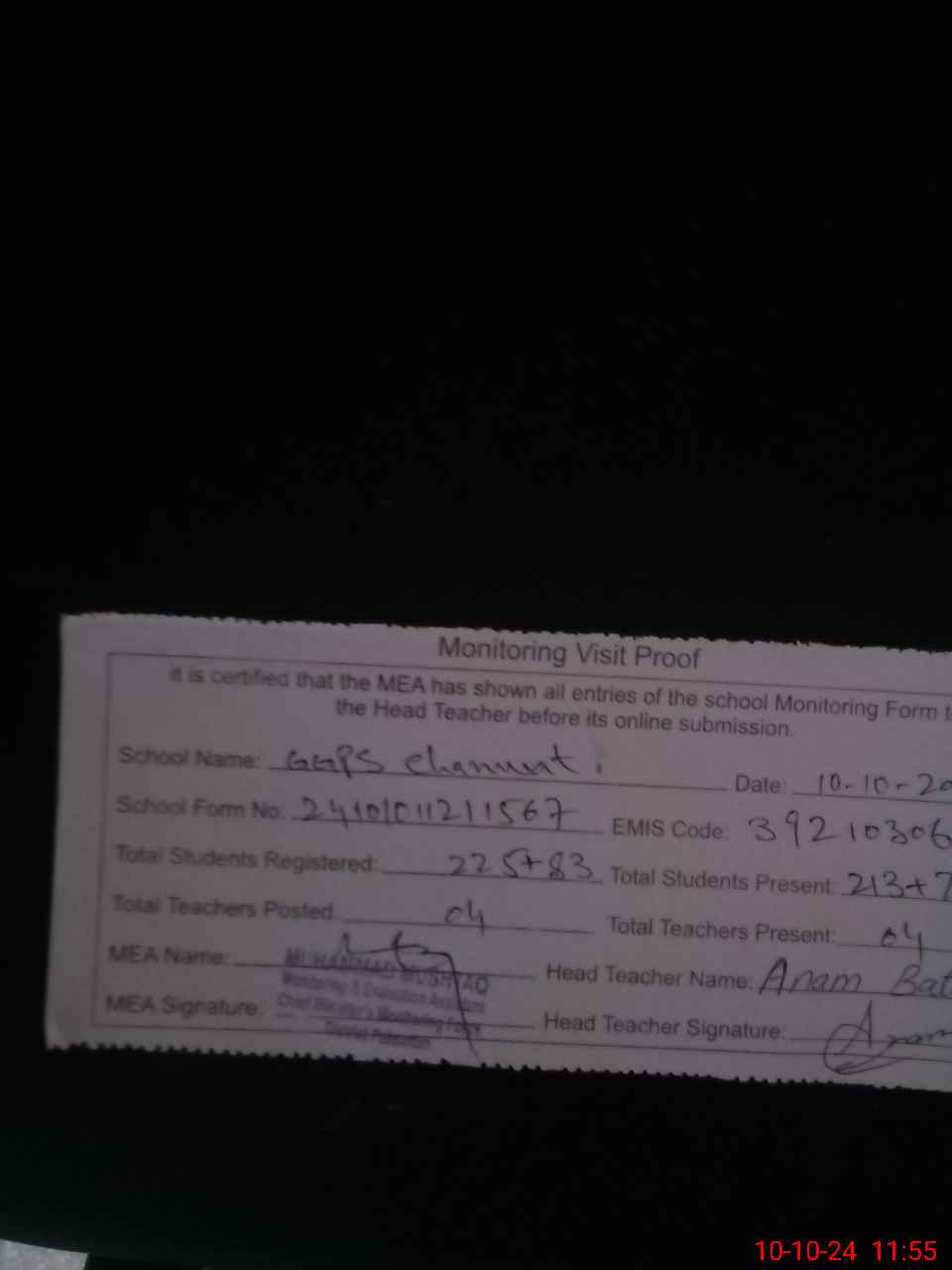 | Certified that this School was Inspected by the Undersigned MEA/DMO Today and the Information Stated Above is as Per Record. | |||||