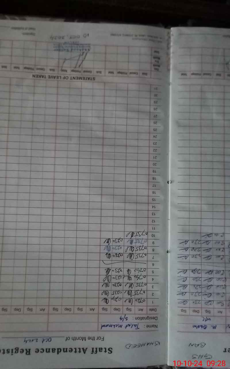 | Monitoring Date: 10-10-2024 | Start Time: 10-10-2024 09:12 AM | End Time: 10-10-2024 10:36 AM | Name of MEA: Sh**** Sa**** | |