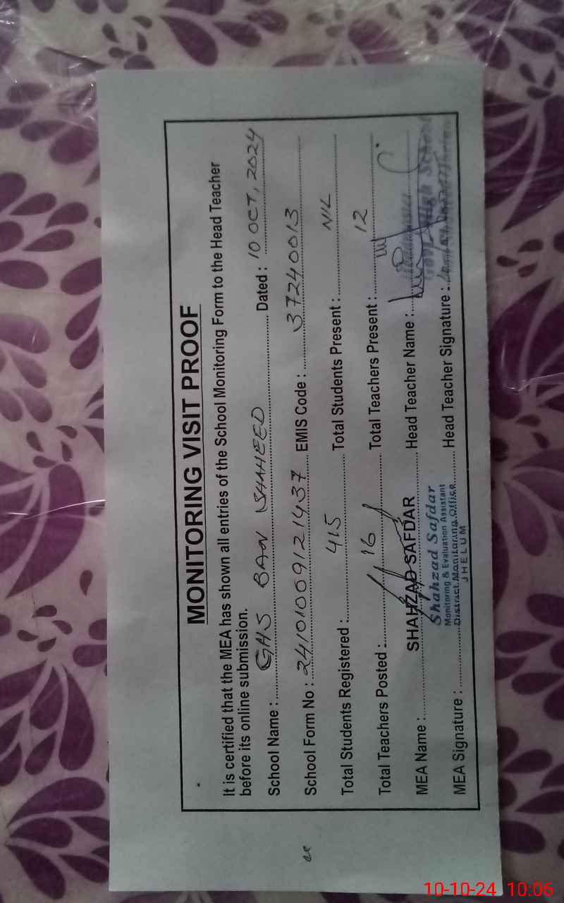 | EMIS Code: 37240013 | Name of School: GHS BAN SHAHEED | |||