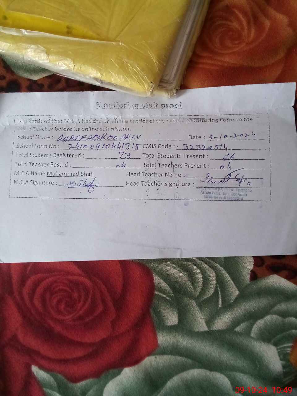 | EMIS Code: 32320514 | Name of School: GGPS FAQIROO ARAIN | |||