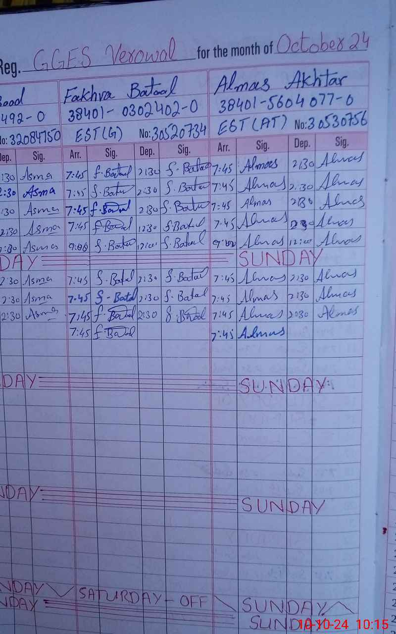 | CNIC | Full Name | Designation | R/C | Absence During Last Calender Month |