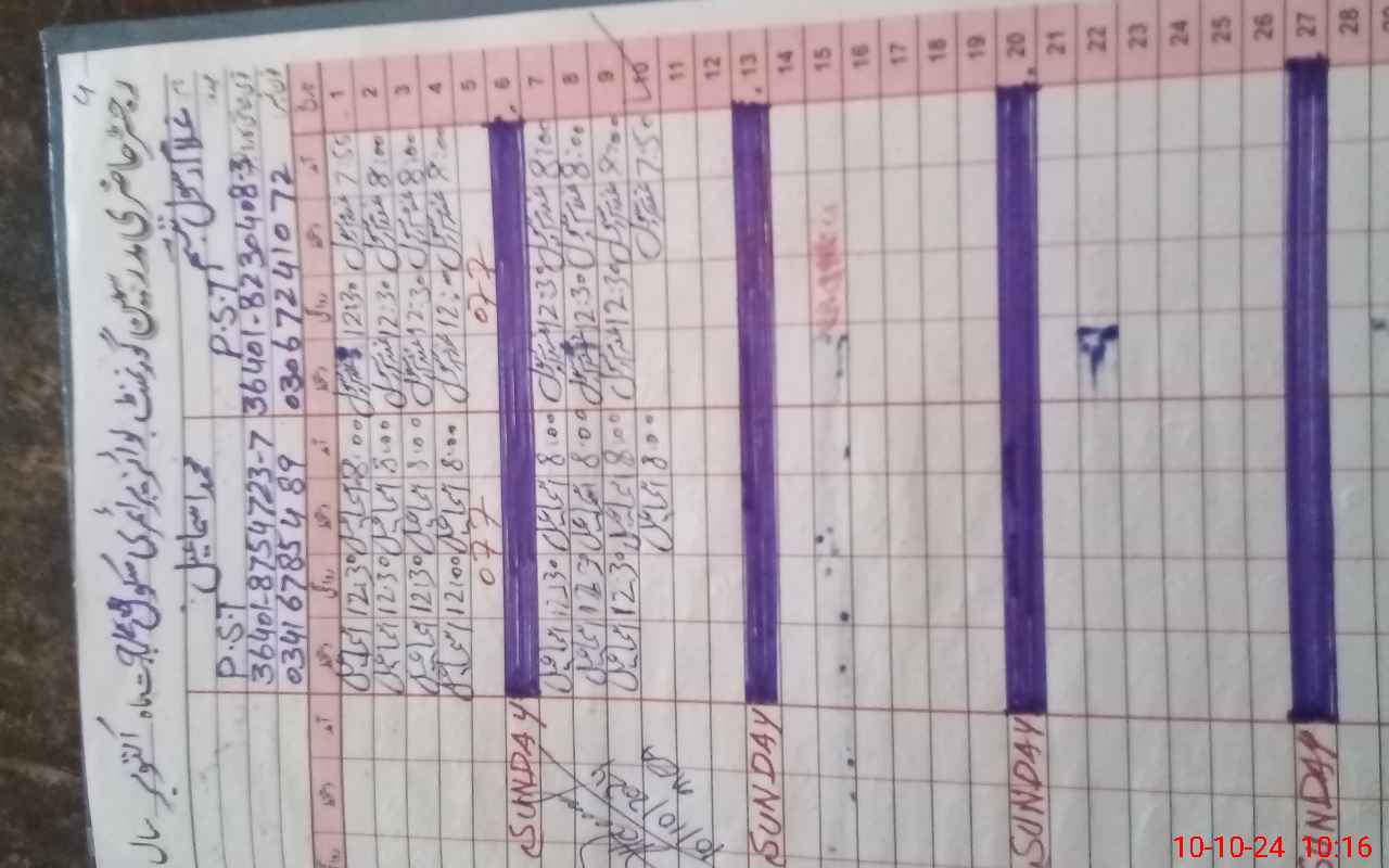 | Name: MU**** IS**** Designation: (School Headmaster's/Headmistress's) PST Phone/Cell Number: 03**** |