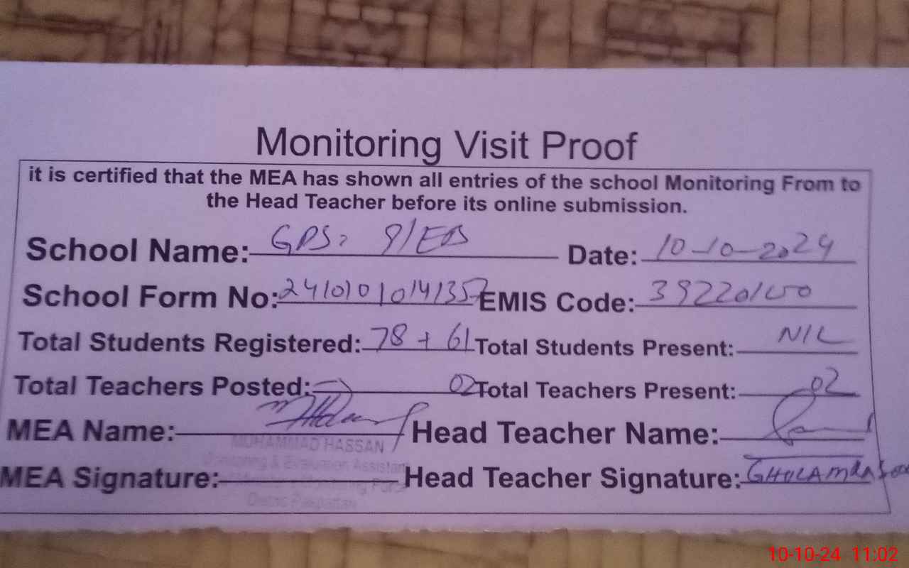 | EMIS Code: 39220100 | Name of School: GPS 9/EB | |||