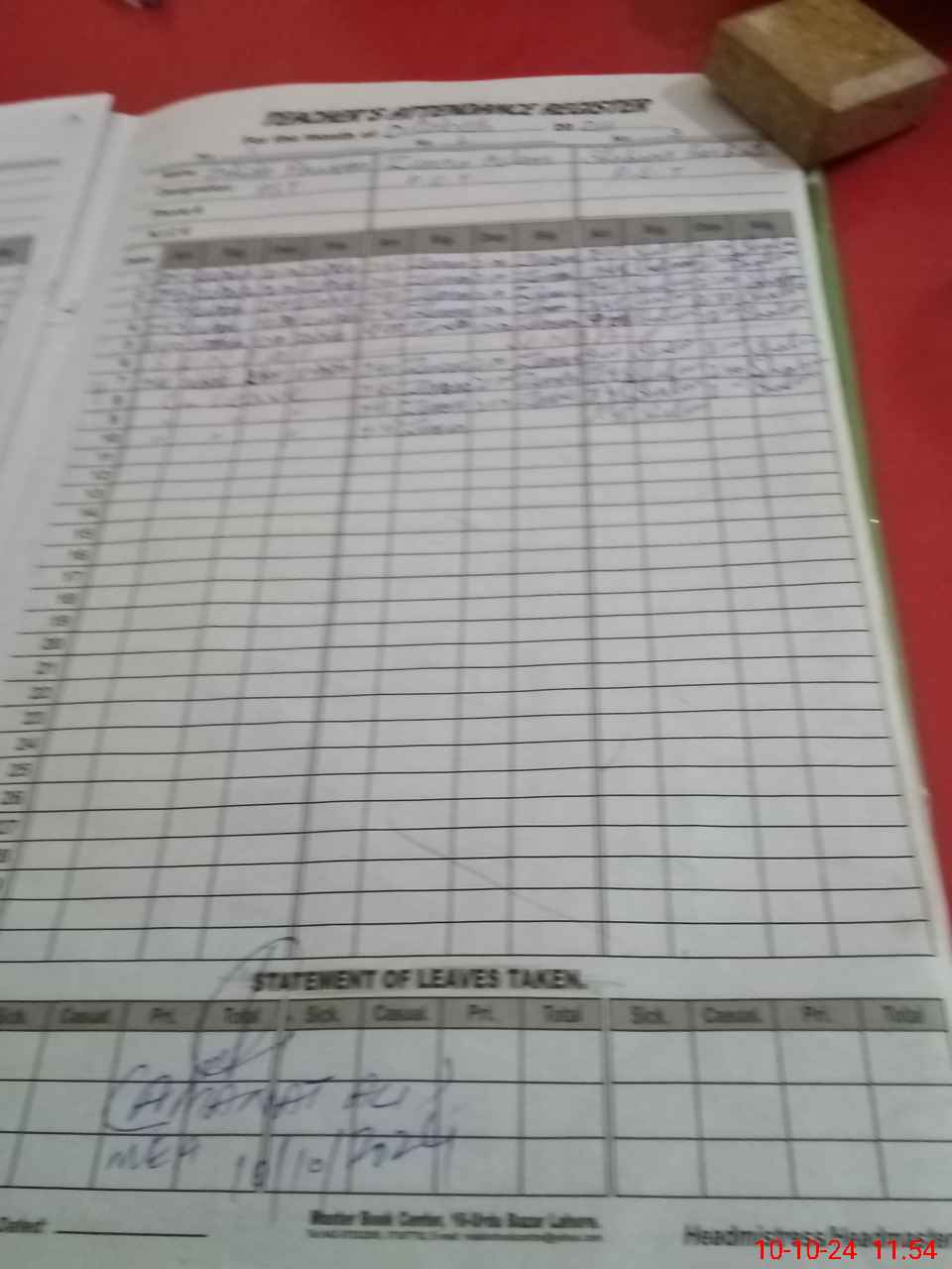 | Leave | Duty | Absent | Maternity | Medical | Ex- Pak |