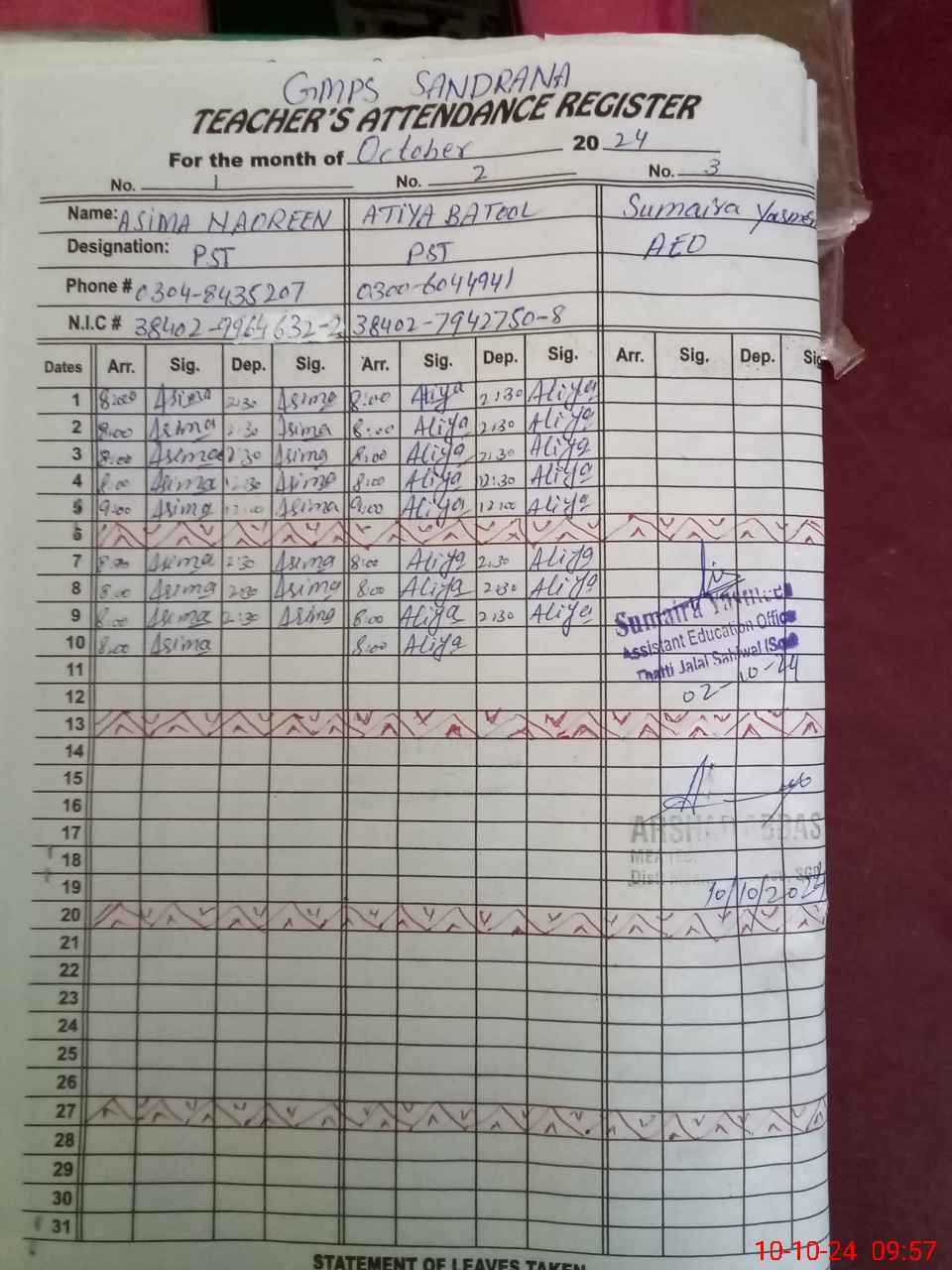 | Name: AS**** NO**** Designation: (School Headmaster's/Headmistress's) ESE (SCI _ MATH) Phone/Cell Number: 03**** |