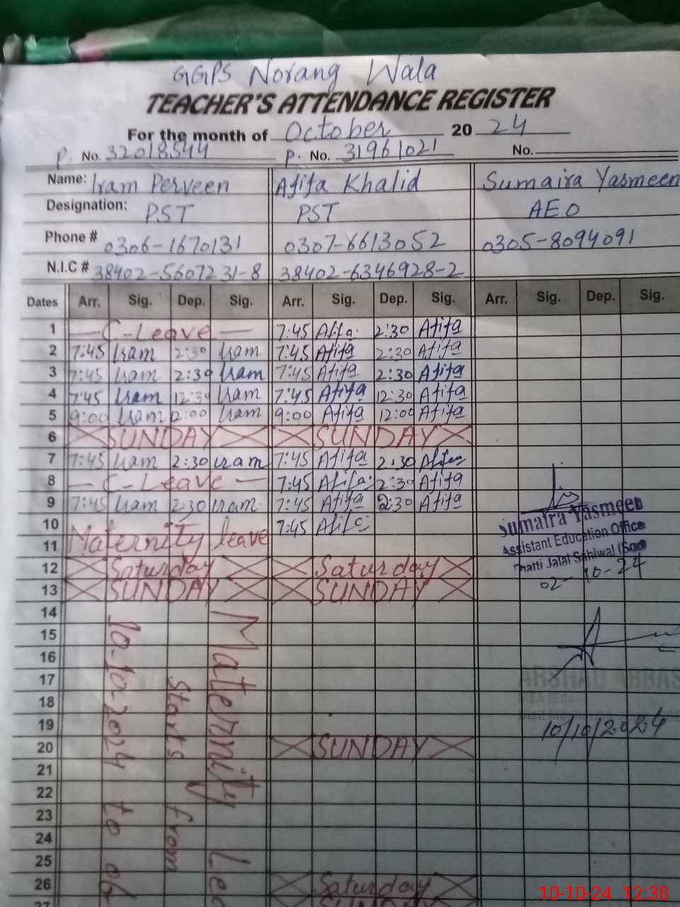 | Name: IR**** PA**** Designation: (School Headmaster's/Headmistress's) PST SCI MATH Phone/Cell Number: 03**** |