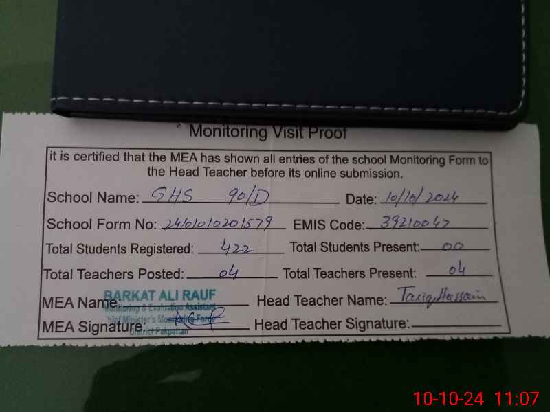 | EMIS Code: 39210047 | Name of School: GHS 90 D | |||