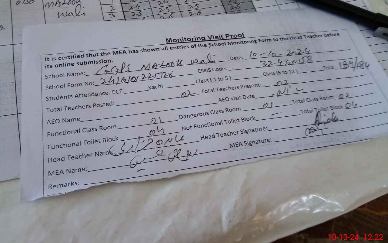| EMIS Code: 32430158 | Name of School: GGPS MALOOK WALI | |||