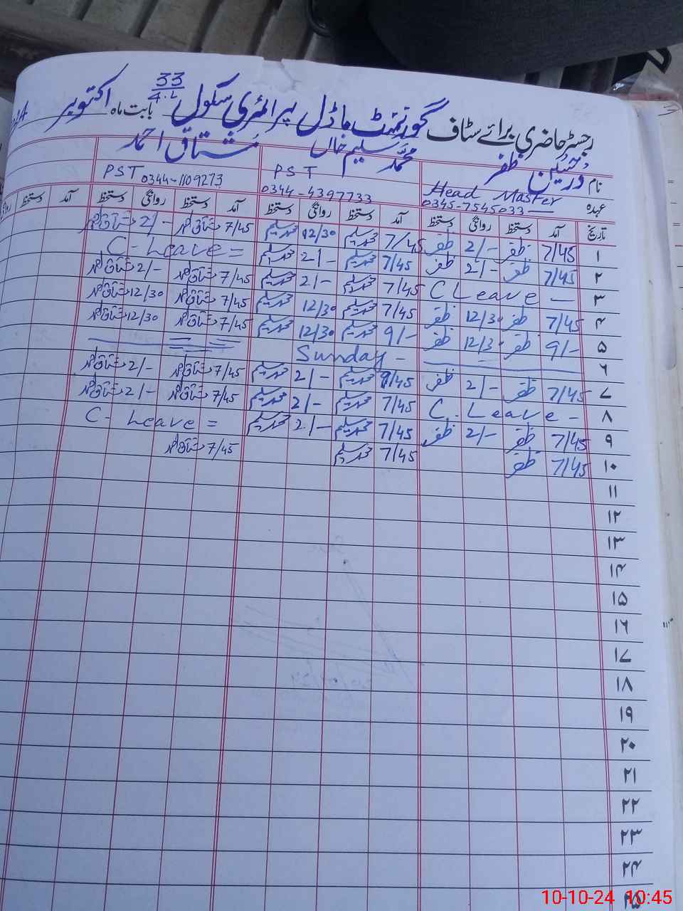 | 33**** | Sa**** Ak**** | PST | Regular | 0 | 0 | 0 | 0 | 0 | 0 | 0 | 0 | 0 | Maternity |