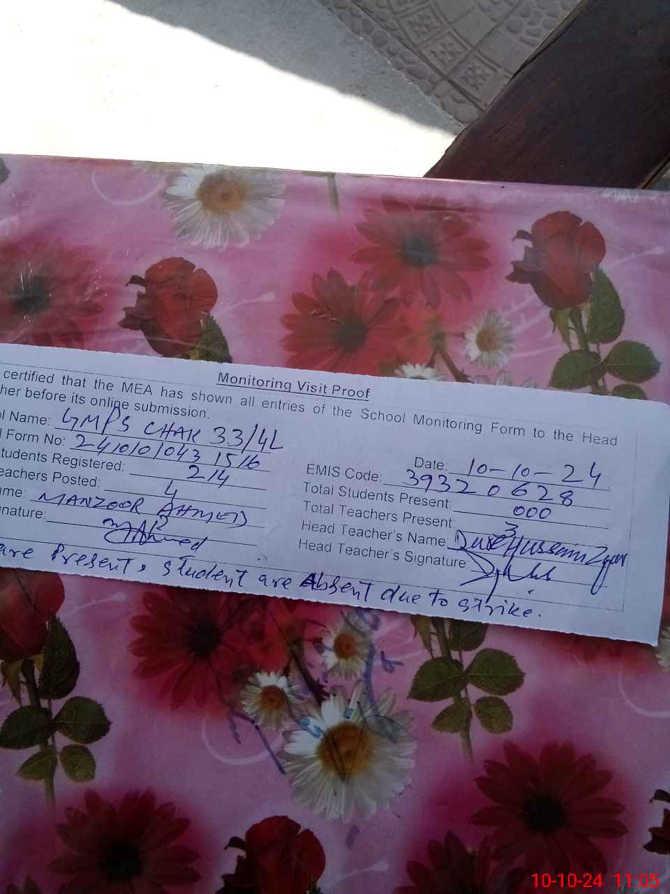 | EMIS Code: 39320628 | Name of School: GMPS CHAK NO. 33/4-L | |||