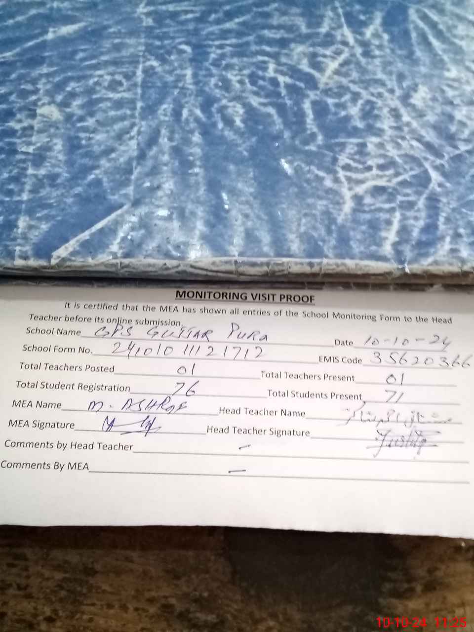| EMIS Code: 35620366 | Name of School: GPS GUJJAR PURA | |||