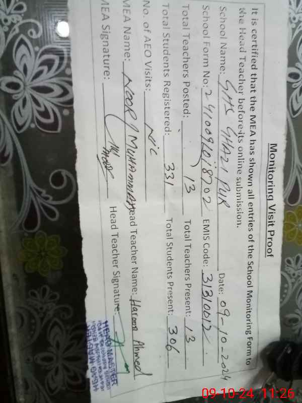 | EMIS Code: 31310012 | Name of School: GHS GHAZI PUR | |||