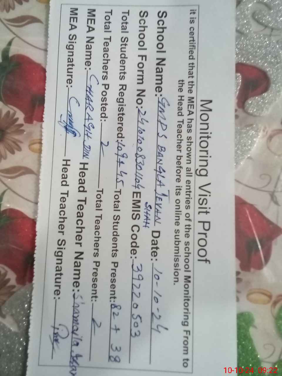 | EMIS Code: 39220503 | Name of School: GMPS BANGLA JEVAN SHAH | |||