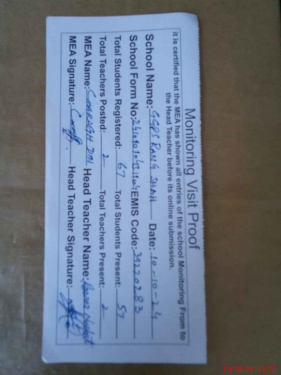 | EMIS Code: 39220283 | Name of School: GGPS RANG SHAH | |||