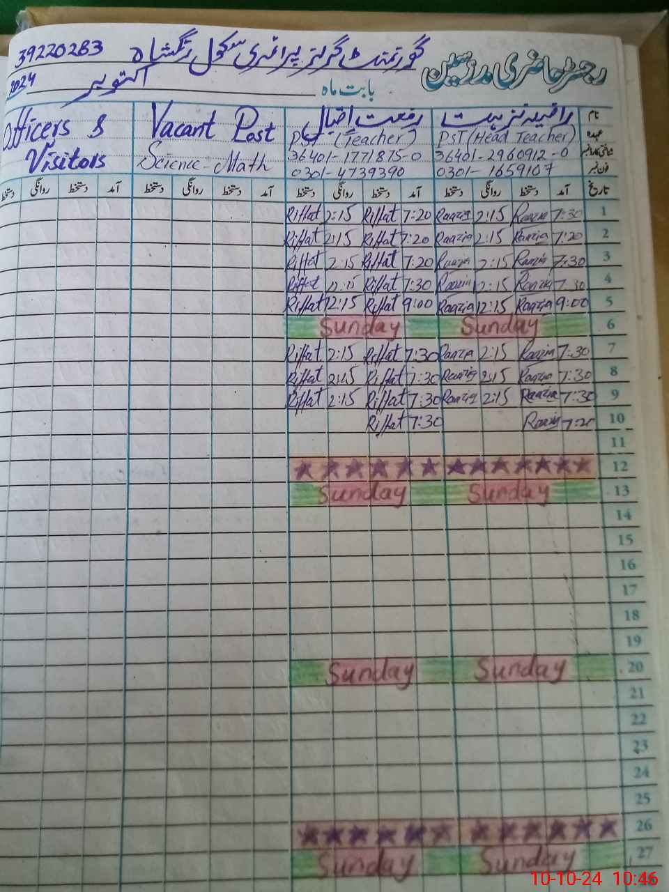 | Name: RA**** NU**** Designation: (School Headmaster's/Headmistress's) PST Phone/Cell Number: 03**** |