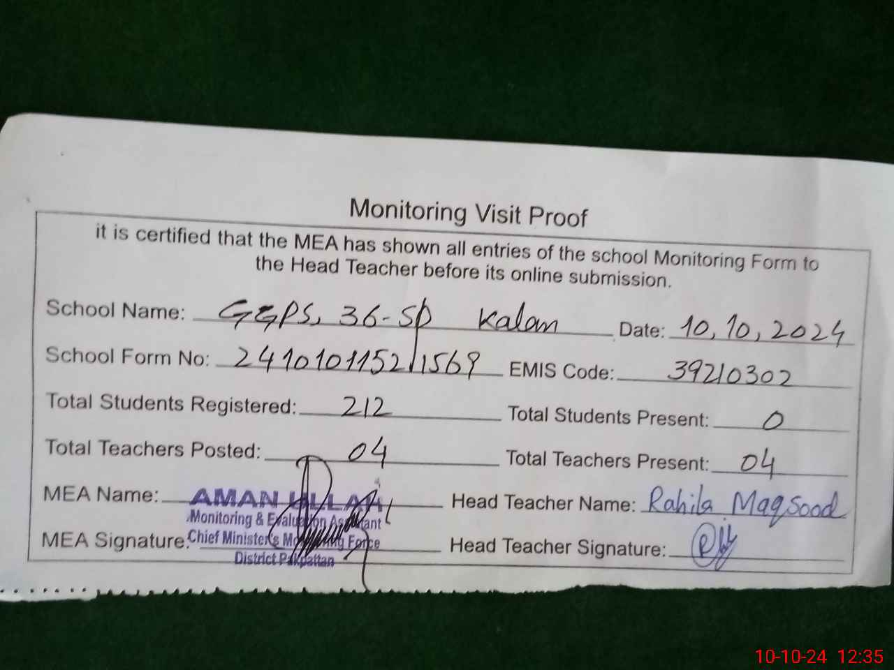 | Monitoring Date: 10-10-2024 | Start Time: 10-10-2024 11:52 AM | End Time: 10-10-2024 12:37 PM | Name of MEA: AM**** UL**** | |