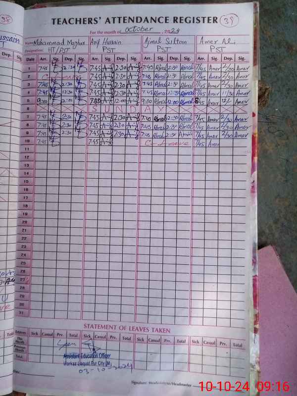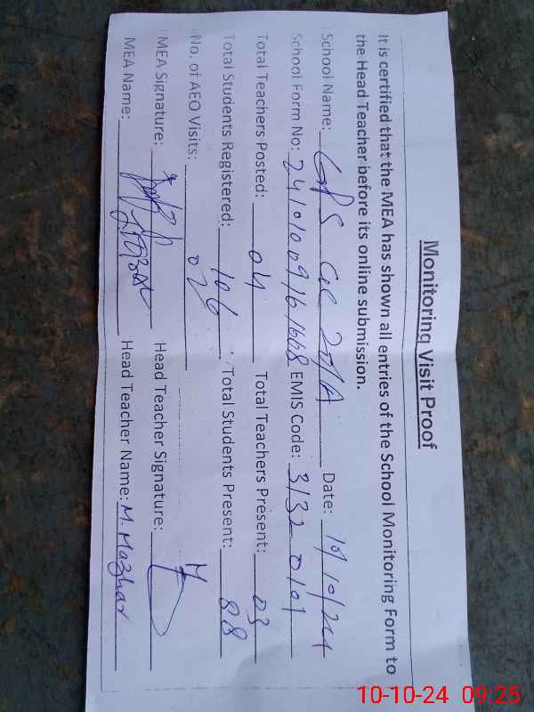 | Name: AM**** AL**** Designation: (School Headmaster's/Headmistress's) PST Phone/Cell Number: 03**** |