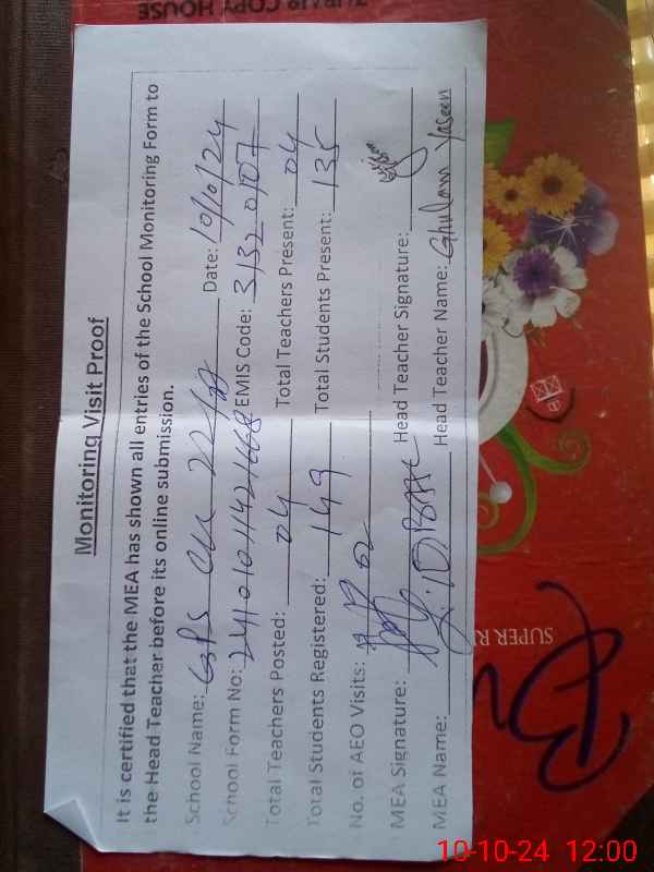 | Attendance Register | Head Teacher | MEA with School | Visit Proof |