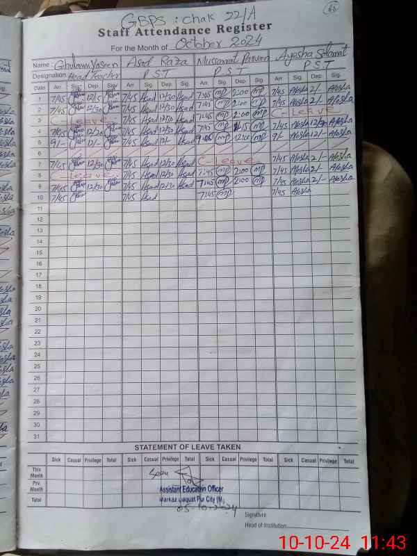 | Name: AS**** RA**** Designation: (School Headmaster's/Headmistress's) PST Phone/Cell Number: 03**** |