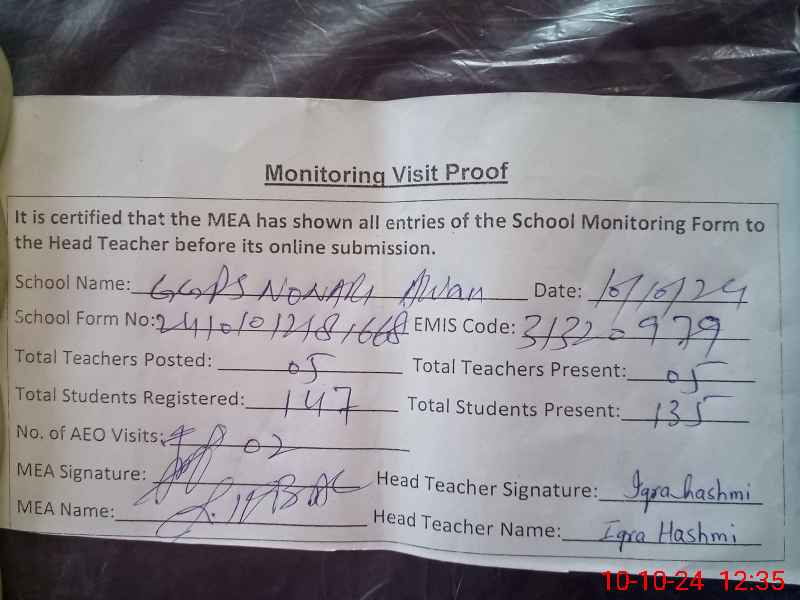 | EMIS Code: 31320979 | Name of School: GGPS NONARI AWAN | |||