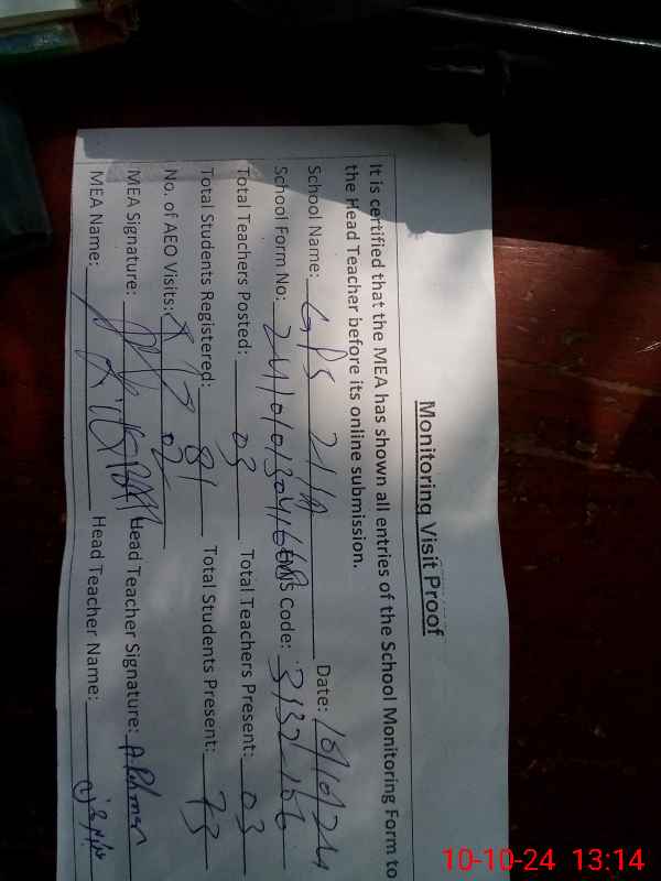 | Attendance Register | Head Teacher | MEA with School | Visit Proof |