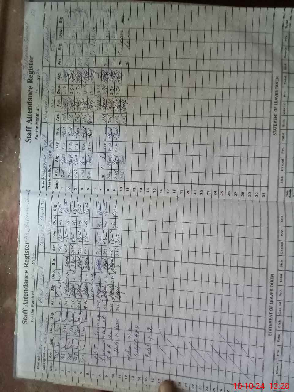 | Leave | Duty | Absent | Maternity | Medical | Ex- Pak |