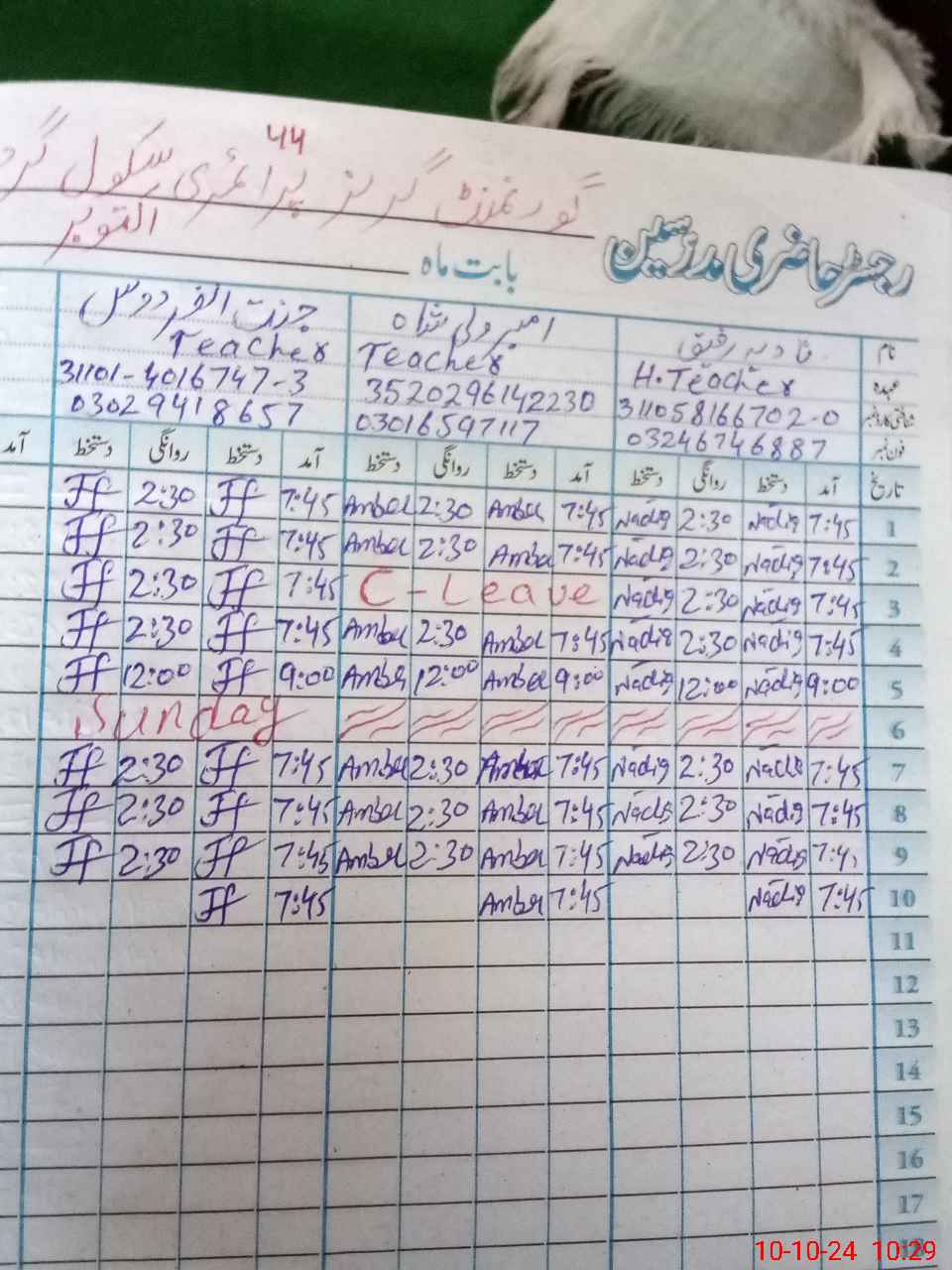 | Name: Na**** Ra**** Designation: (School Headmaster's/Headmistress's) PST Phone/Cell Number: 03**** |