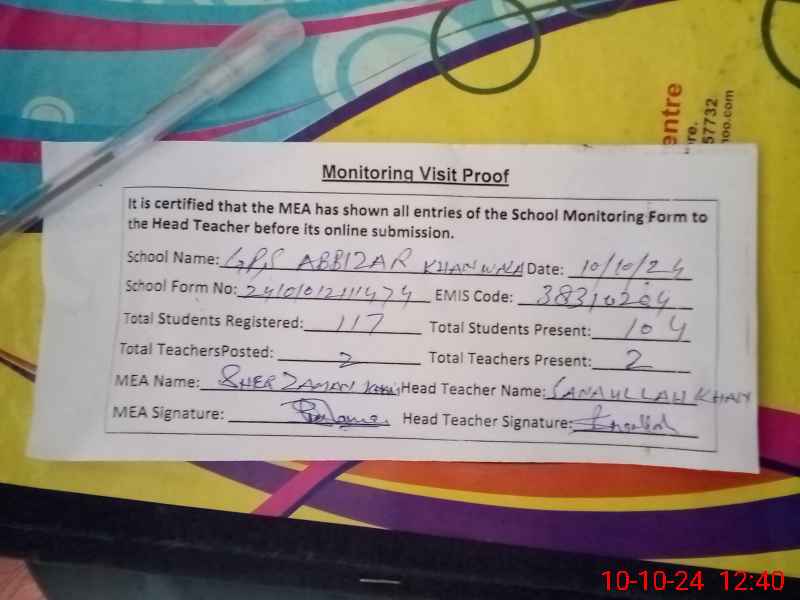 | EMIS Code: 38310204 | Name of School: GPS ABBIZAR KHAN WALA | |||